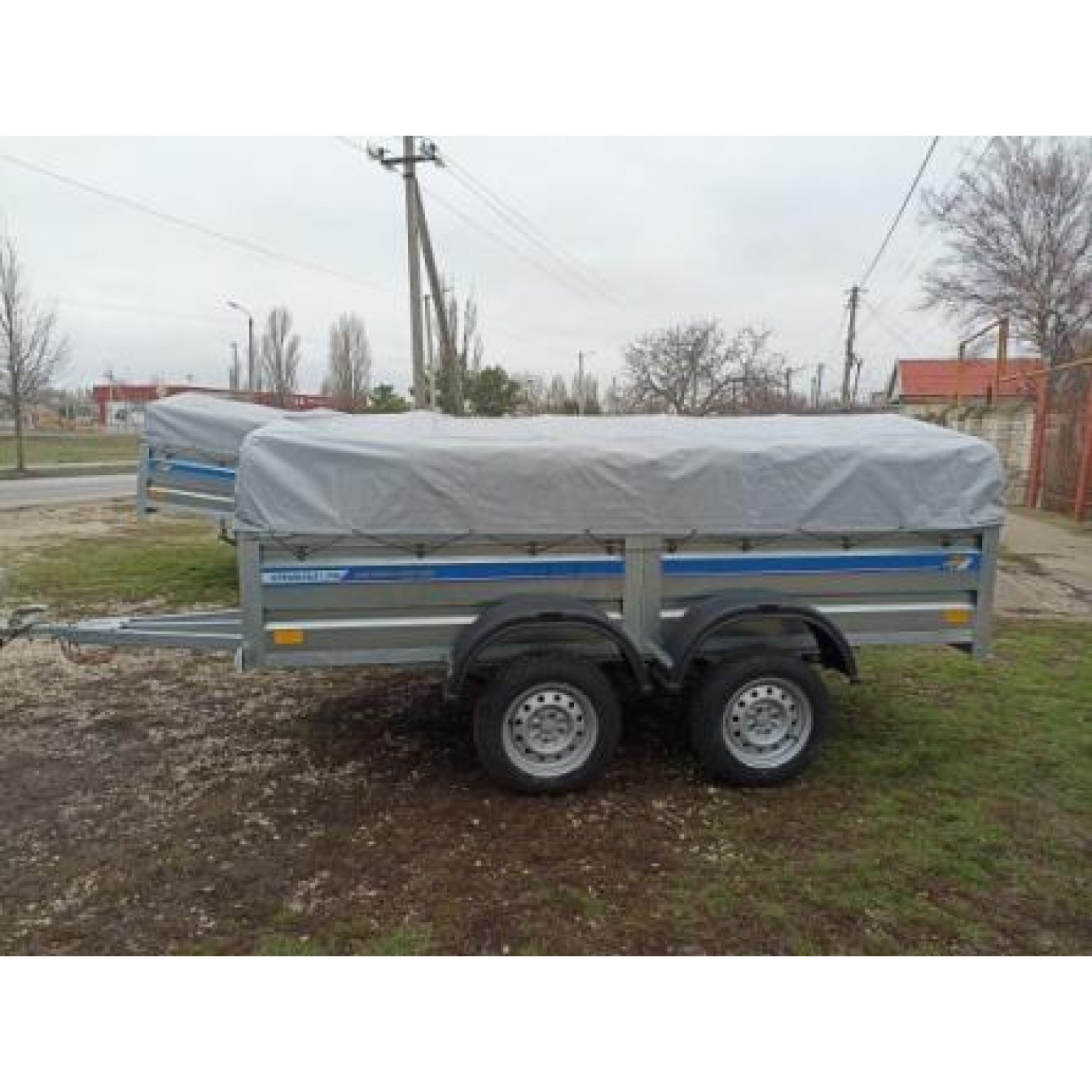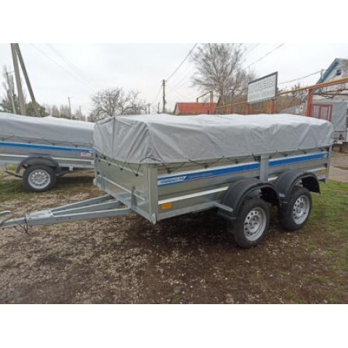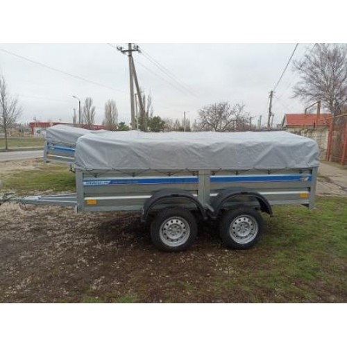 Цена дана за прицеп с колесами и тентом ПВХ . Опорное колесо можно заказать в качестве доп. опции за отдельную плату. В качестве доп. опции можно укрепить передний борт влагостойкой фанерой.Задний борт укреплен фанерой в комплекте.